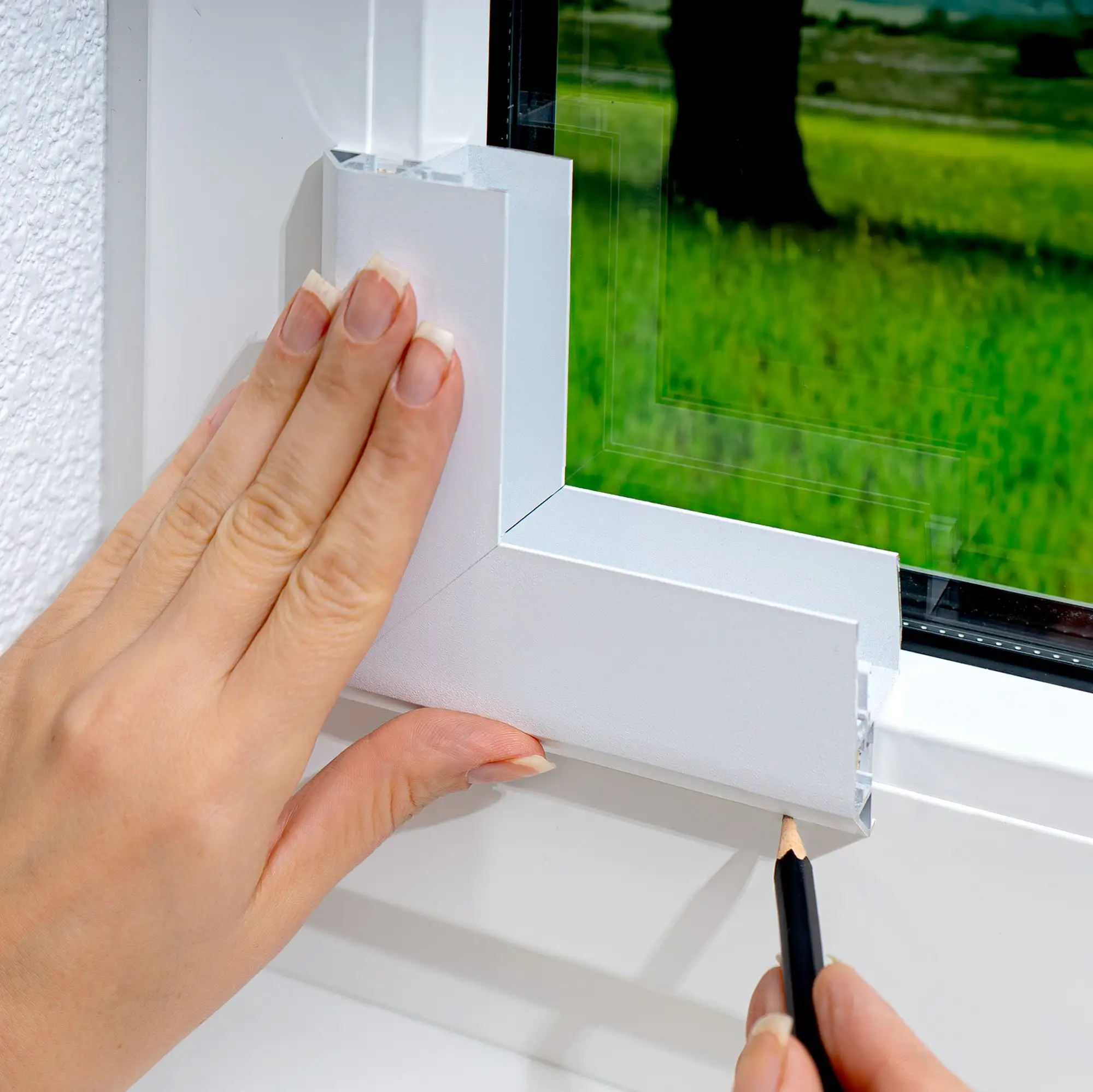 Met onze meethulp meet je eenvoudig je raam op: leg hem tegen de glaslat, teken de randen af en meet de afstand. Dat is je bestelmaat. De meethulp is er in dezelfde kleuren als het frame, zodat je meteen ziet hoe het bij je kozijn past.