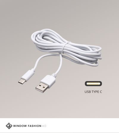 Witte kabel van 3 meter om de accu op te laden. Handig als je geen zonnepaneel gebruikt.